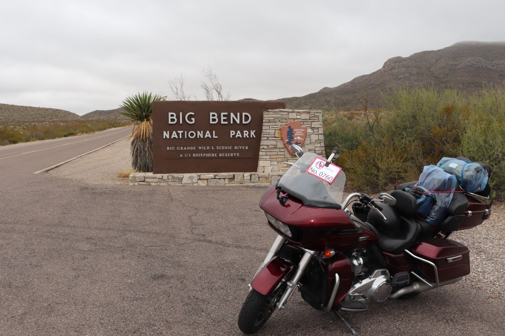 We hit the only gas station in town to fill up then took TX-385 south out of town. It’s 40 miles of two lane desert just to get to this sign and aside from a border patrol check point five miles from town, there’s nothing out here. But, even under overcast skies, the landscape is beautiful. Mountains on all sides of me, the tallest peaks hidden in the clouds.