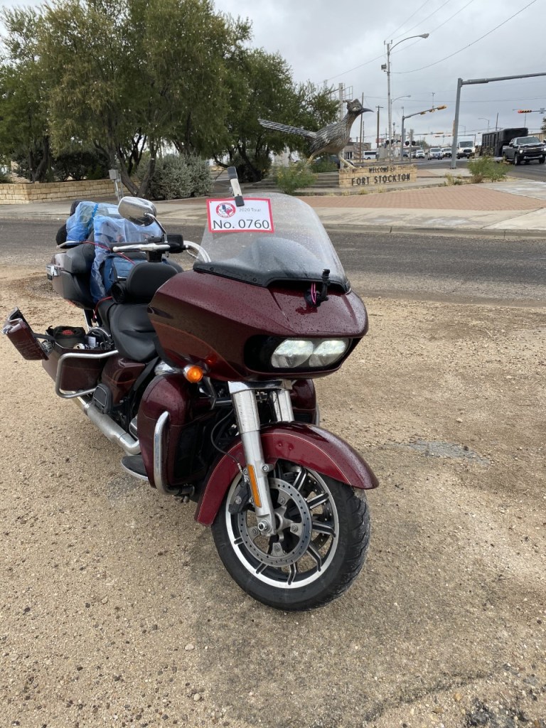 Caught a few sprinkles on the way back which killed any thoughts of getting out of the rain suit. I did get a couple of roadrunners dart across the road in front of me. No coyotes or Acme products though. Got back into town and started on the 60 miles back to Fort Stockton for stop number four.