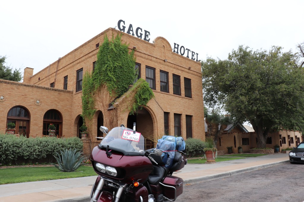 Stop two is the Gage Hotel in Marathon, Texas, about 150 miles from Odessa. The sky remains overcast and the temps are hanging around 50. It’s a chilly ride but my hands are good and I’m not catching much of a chill. We jumped back on I-20 and headed west to Monahans, then cut south towards Fort Stockton. Not much change in scenery, it’s either oil stuffs or nothing. The roads are mostly two lane from here on out.