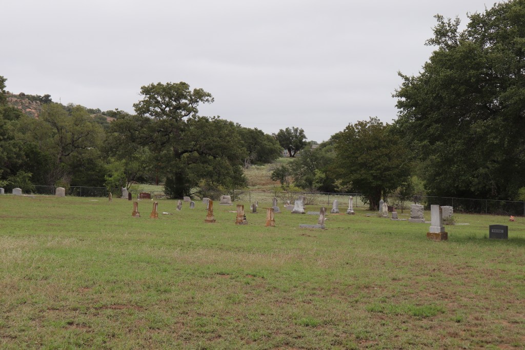 We wound our way into San Saba and headed south towards Cherokee. This cemetery is located between Cherokee and Llano. The sign here reads, “According to local oral tradition, the name Babyhead was given to the mountain in this area in the 1850’s, when a small child was killed by indians and it’s remains left on the mountain. A local creek also carried the name, and a pioneer community, founded in the 1870’s became known as Baby Head. The oldest documented grave here is that of another child, Jodie May McKneely, who died on New Year’s Day 1884. The cemetery is the last physical reminder of the Baby Head community, which once boasted numerous homes, farms and businesses.”