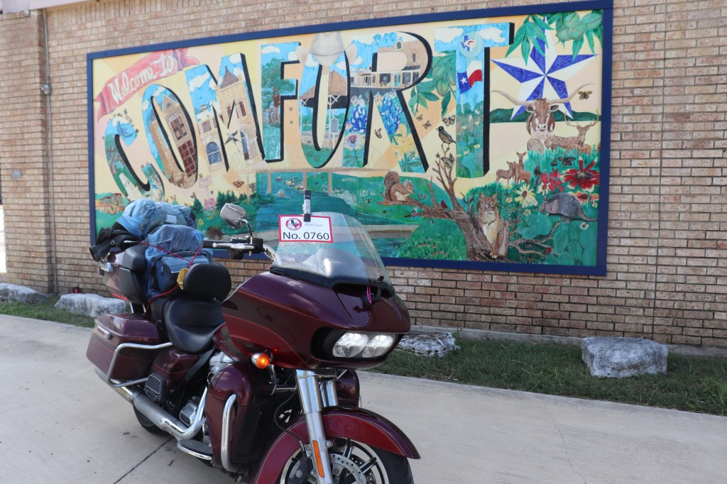 Another short twenty miles into Comfort. This town is nice. Has a very comfy feel too it. I could see myself living comfortably here. Alright, enough of that. This first stop is the mural on the side of a business in town. Nothing really special about from what I can tell but it’s part of the tour. The sky has all but cleared by this point, still some clouds hanging around but mostly clear blue skies. On to the next stop, less than a mile away.