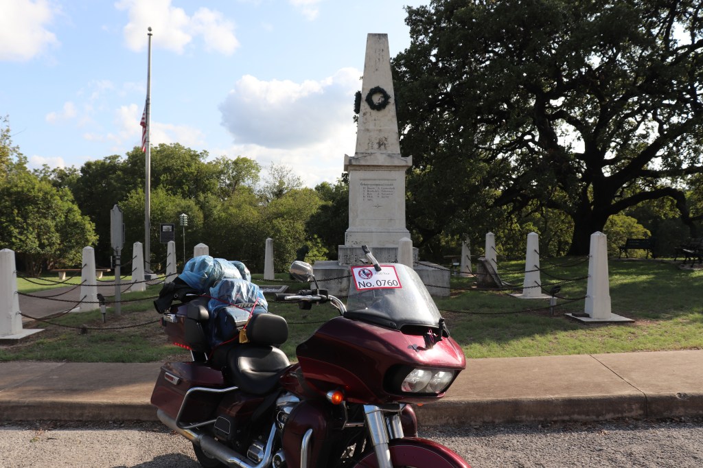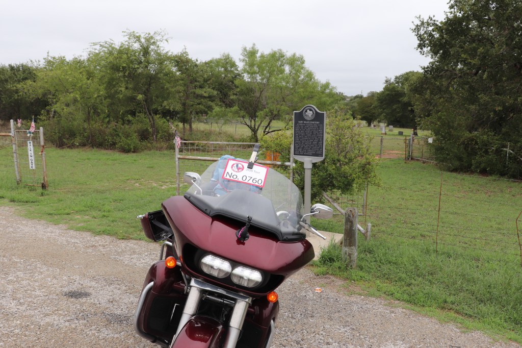 The rain began to let up about 30 miles into our day. And although the sky remained overcast, the roads began to dry out. We started out heading towards Rochelle, TX but we really needed to find highway 377. Our first stop does not have an address. It’s actually one of those historical markers we all see and pass without ever thinking to stop.