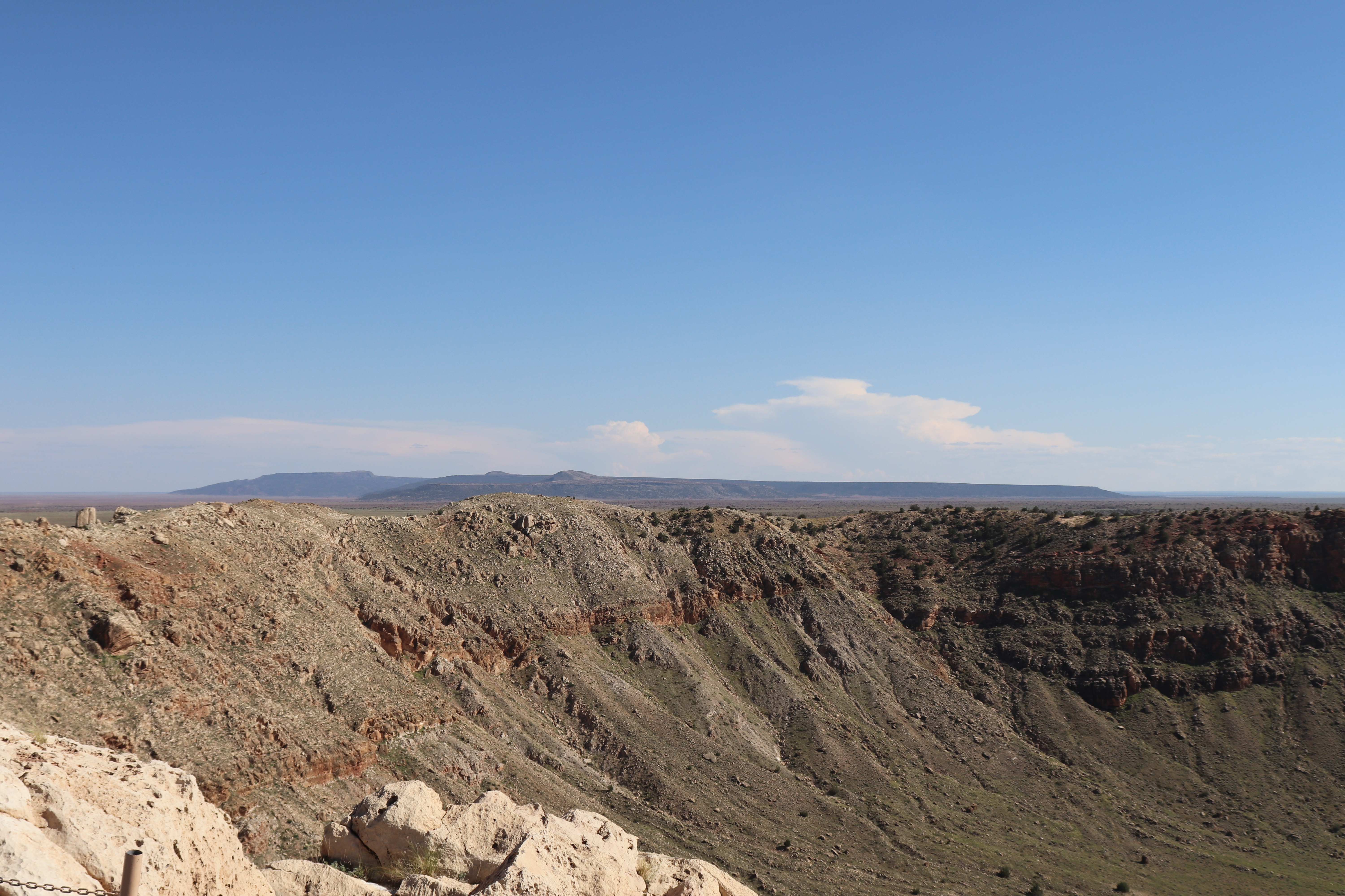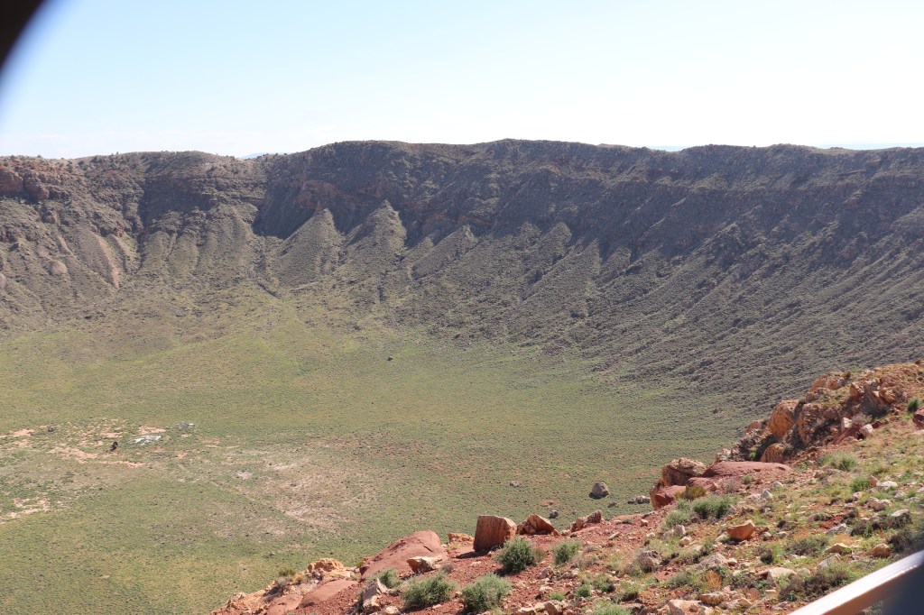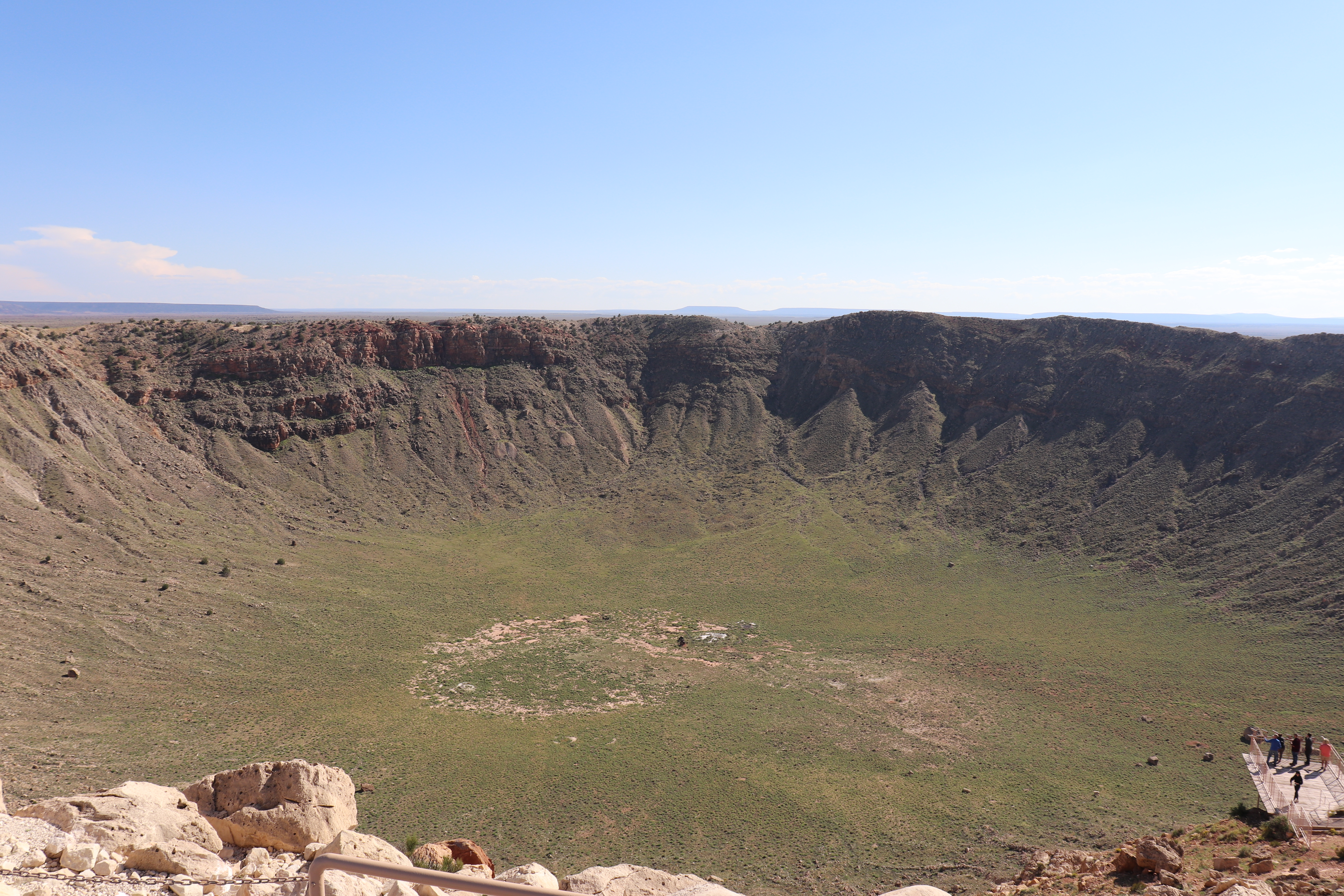 50,000 years ago a meteor just 150 feet wide struck here creating a crater over 4,000 feet wide and 700 feet deep. I’ll post photos below. In one you can see an astronaut and American flag. The astronaut is apparently 6’2″ tall and the flag is the standard 3ft x 5ft. From the observation decks the flag is visible with the naked eye but only if you know where to look. There’s also a photo of a square rock that sits on the rim of crater. This rock is apparently the size of a house. How big of a house I don’t know but still, its a big rock.