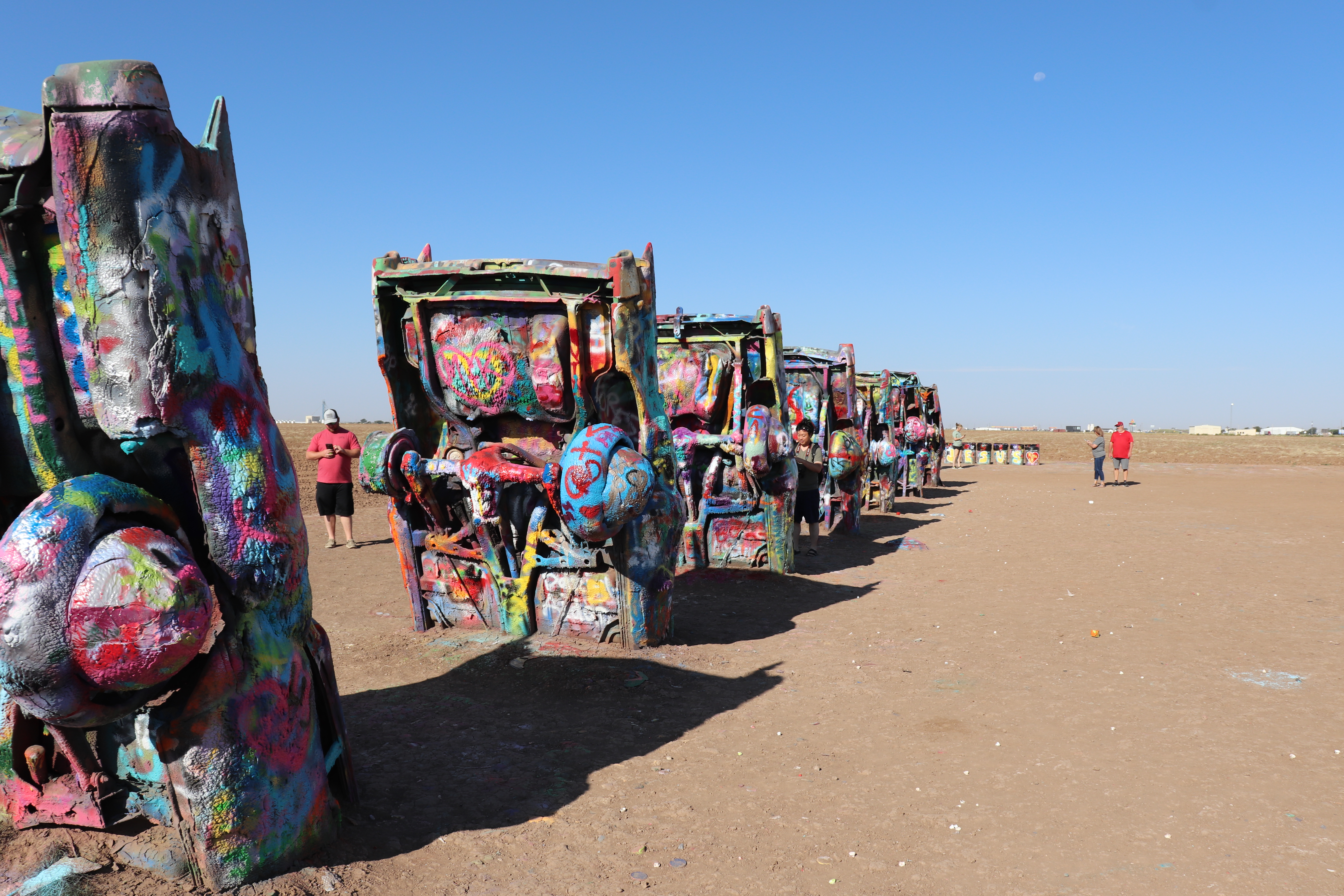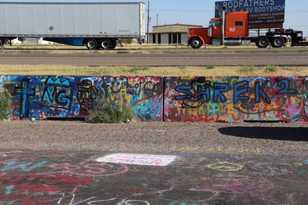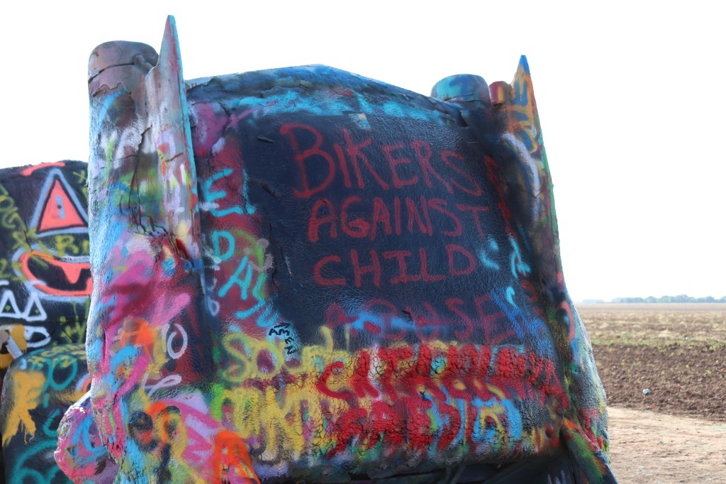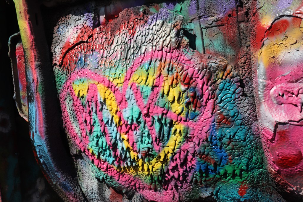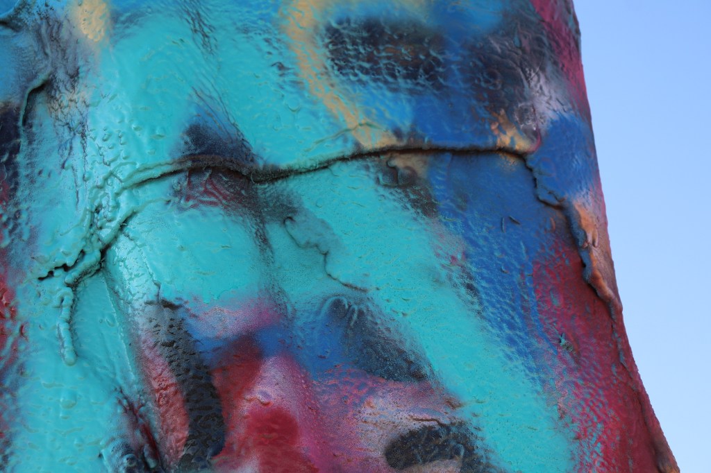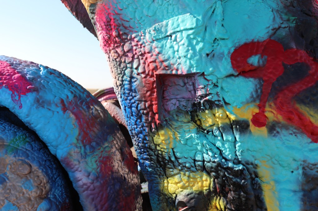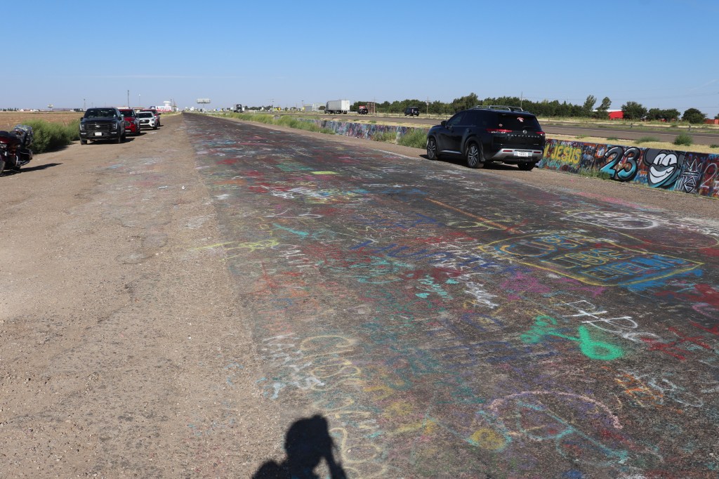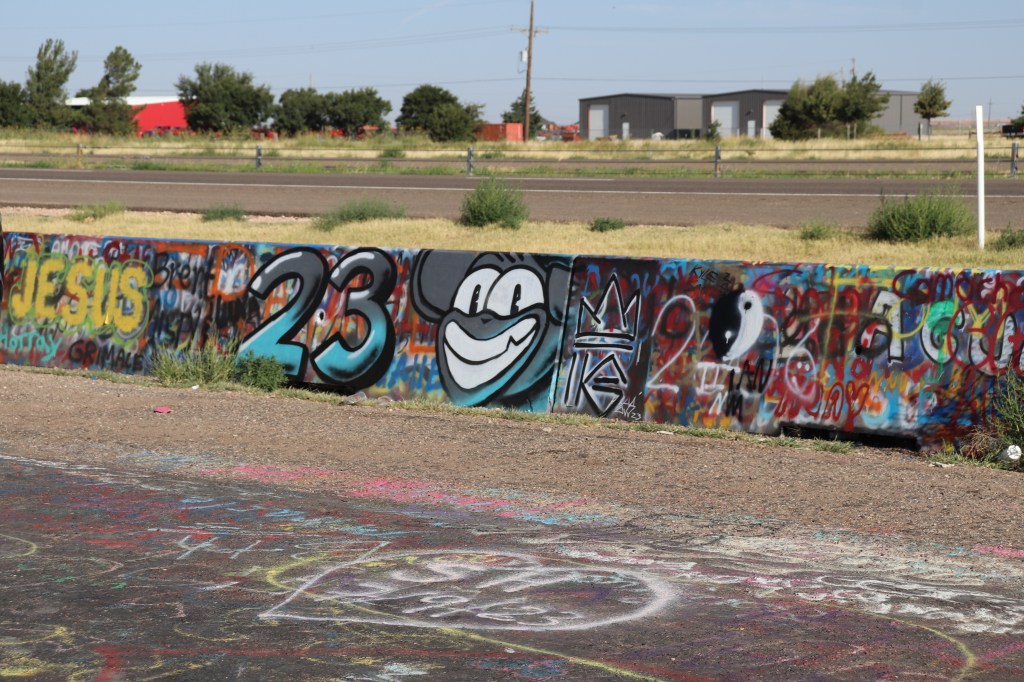 I’m on the road just after 9:00 and decide to head west, Cadillac Ranch is just on the other side of town. I missed it the last time I was through here due to weather so I’ve got to take the opportunity to see it. It’s out of my way but not by much. When I get there it’s already pretty busy. For those who don’t know, Cadillac Ranch is an art installation of sorts. Ten Cadillacs buried up to their windshields and standing up at an angle. It’s been a graffiti artists playground for years. As I pull in I am amazed at how far the graffiti extends. It’s not just on the cars, it’s on the trash cans, all over the access road, on the concrete barriers between the highway and access road and even on the dirt walkway leading up to the cars themselves. Souvenirs and spray paint can be bought on sight and the entire area around the cars smells of paint as several people are tagging away. The hundreds of layers of paint are easily seen on each car, inches thick in some places. It’s certainly a sight to see but I spend no more than ten minutes there before heading out.