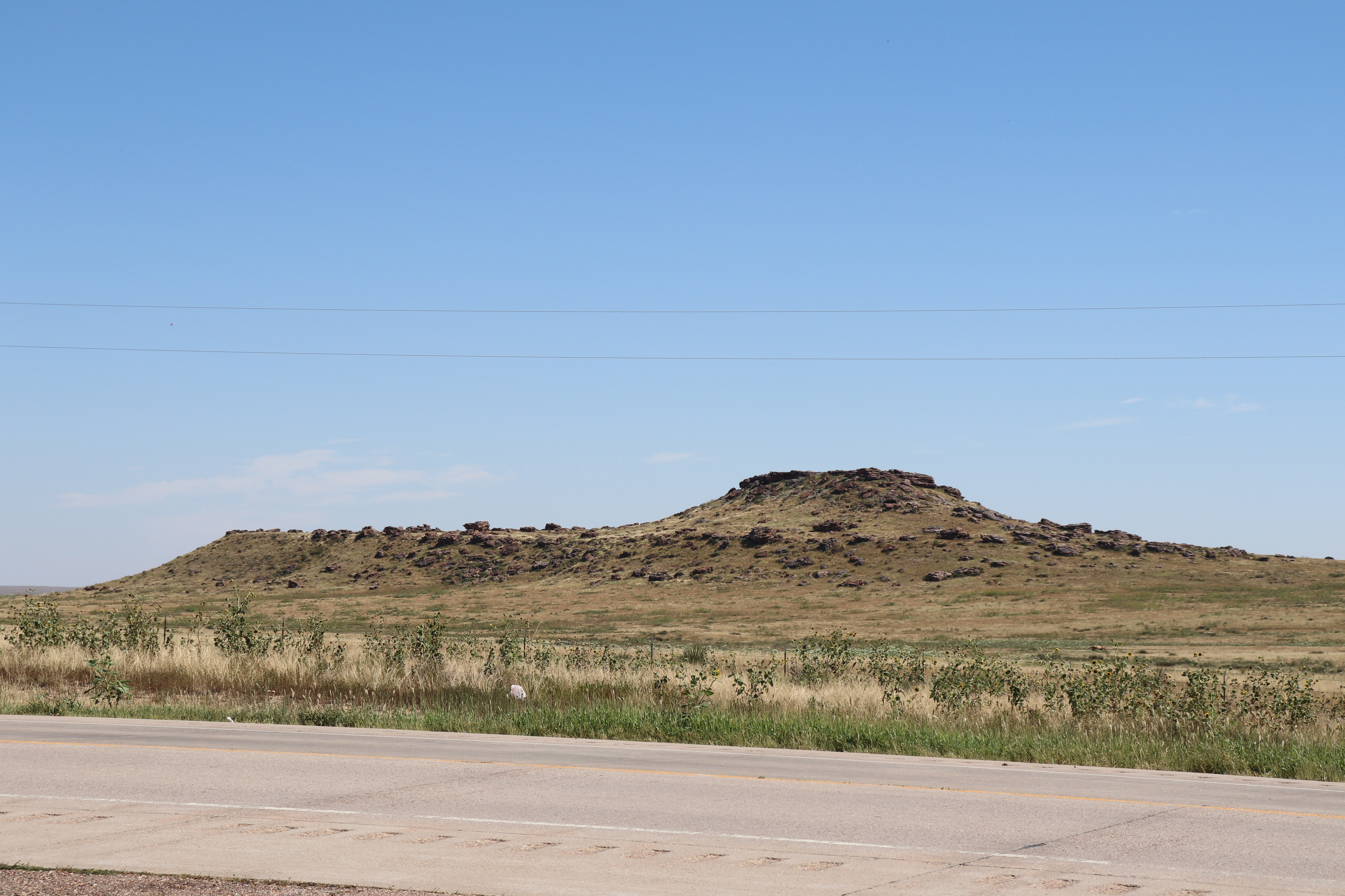 Oklahoma doesn’t last long and we’re soon into the southeastern part of Colorado, the Comanche National Grasslands. And it’s just that, nothing but yellow grass. The roads in Oklahoma switched back to two lane and the landscape flattened out. There’s not much change in Colorado. The first town we hit is Campo and from there it’s a couple of very long stretches of straight road, little to no shoulder and absolutely nowhere to pull off.