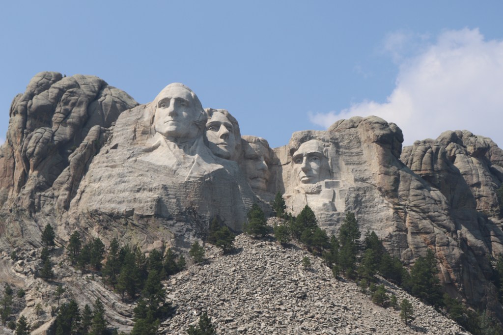 I see a lot of the places we stopped at for food or a beer. A lot of memories here. Lunch is at a place called the Loud American Roadhouse. We never came in here on our rally trip. A Cubano Sandwich sounds best and is delicious, hits the spot. Then it’s on to Mount Rushmore. We run back up to Rapid City and turn off to head into the hills.