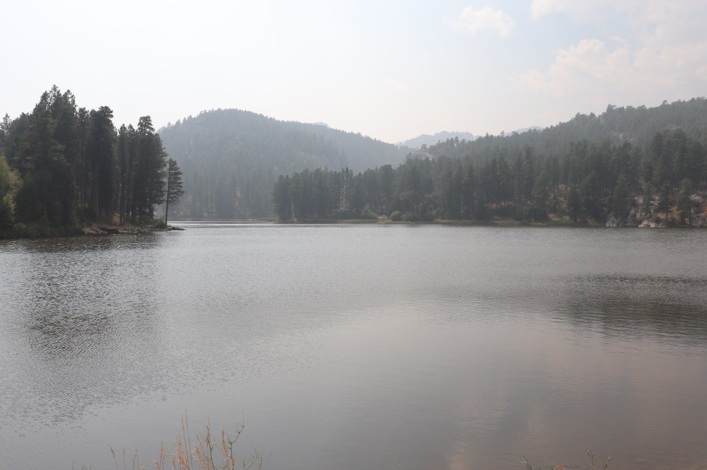 From here it’s time to head to today’s destination, Lead, not far from Rapid City. I can get a couple of nights here for free so I’ve changed over. It’s an amazing ride in. The road doesn’t straighten out for more than a half a mile and is mostly twisties. The landscape of the hills is incredible even with all the smoke.