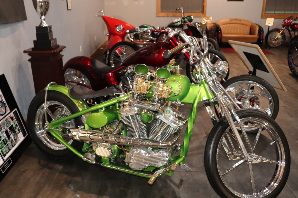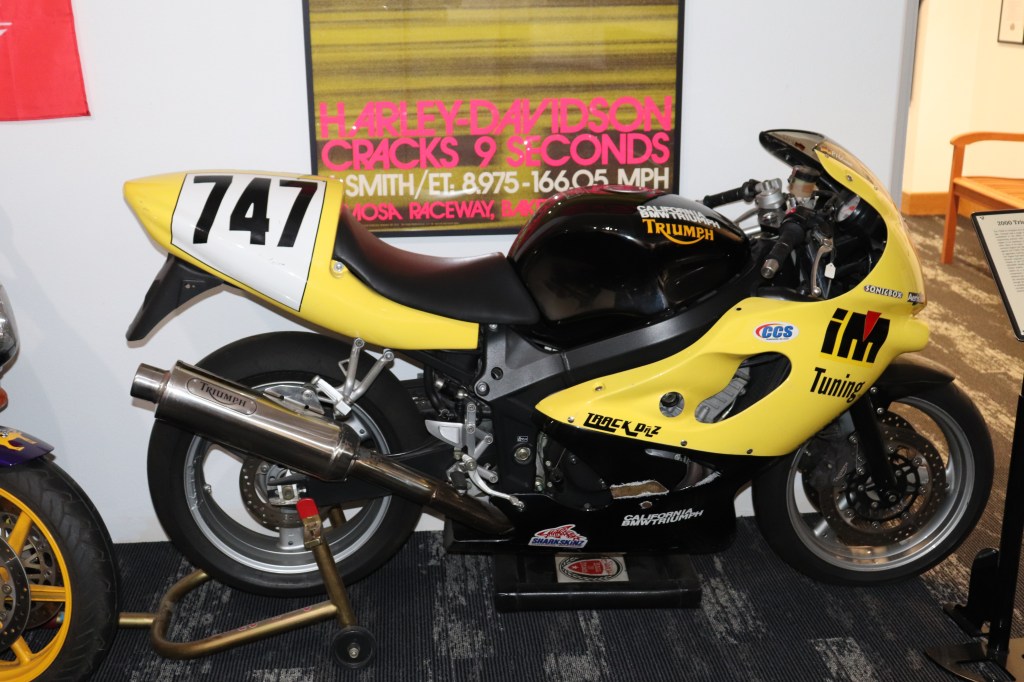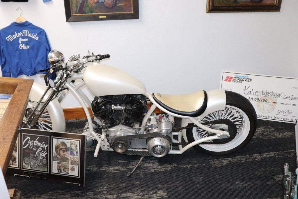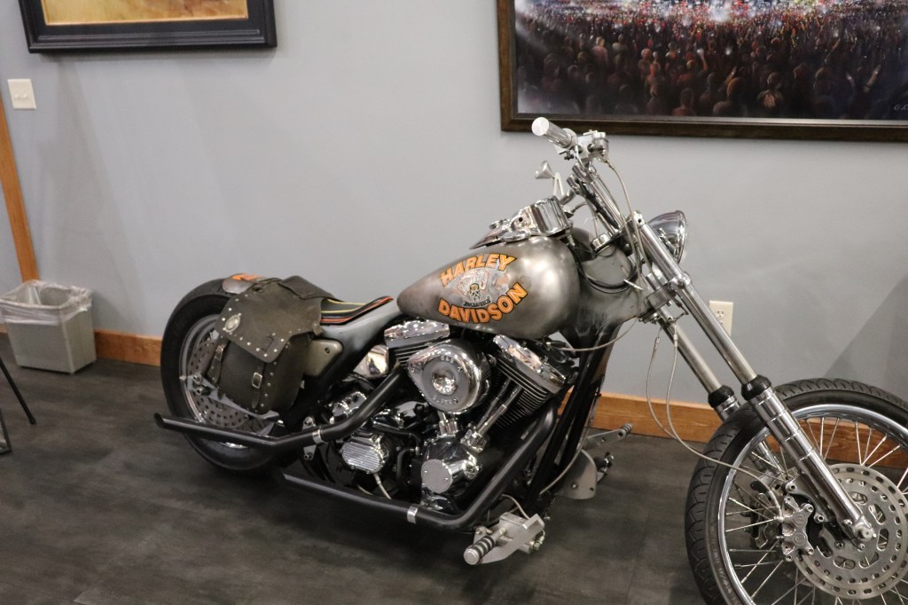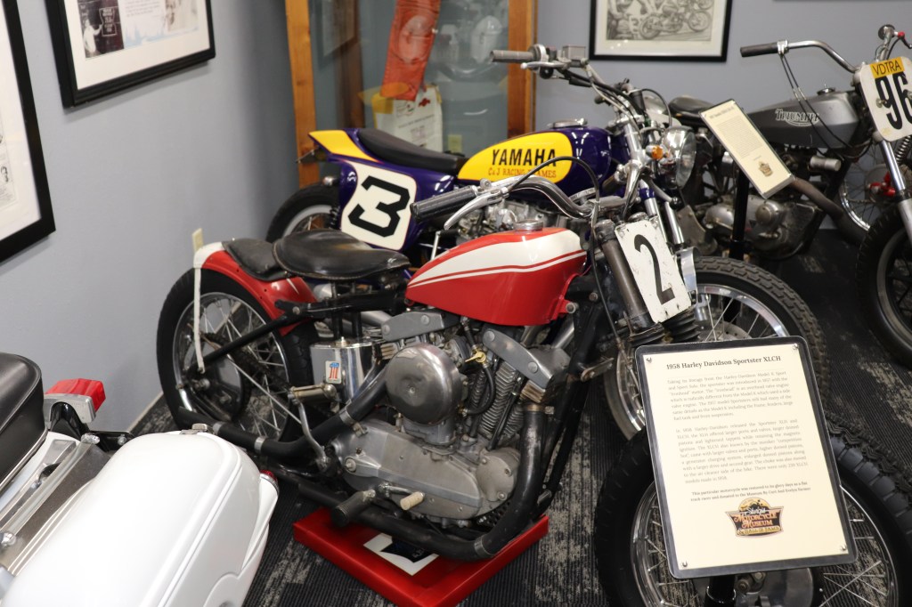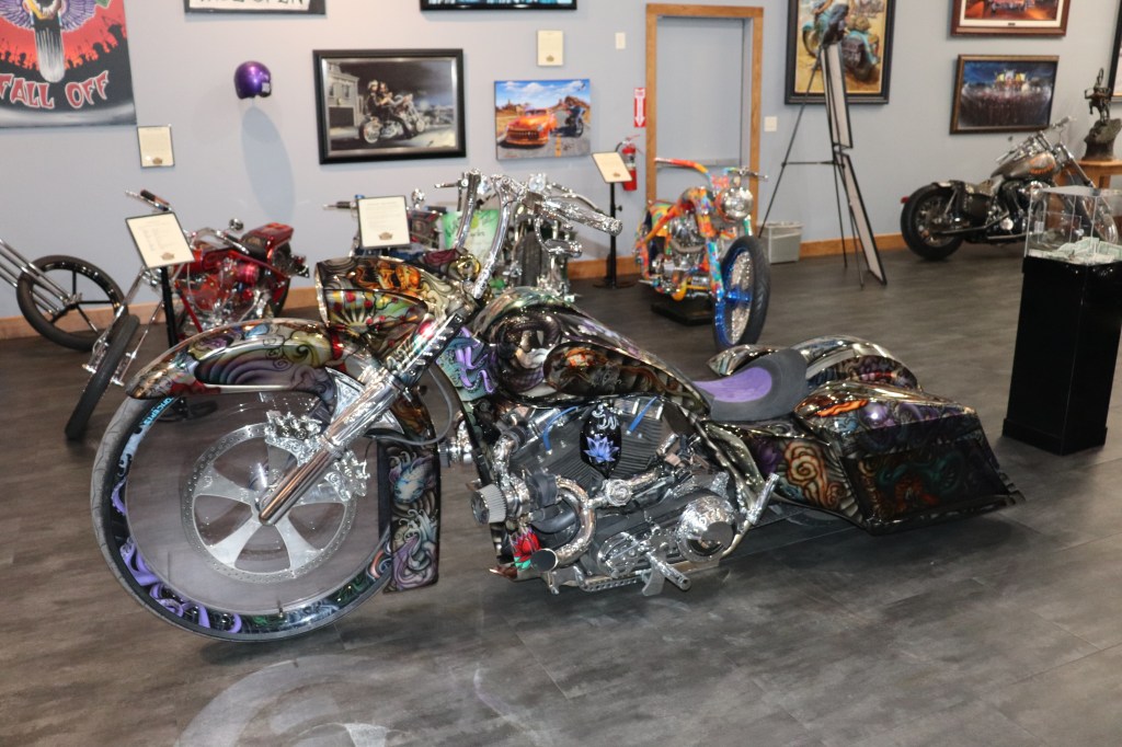 I’ll explain a couple of photos from the museum. The blue box is early GPS. It’s a printed list of directions in a rolling box. Turn one knob and advance the directions, the other knob will roll them back. The black ski looking thing is, well, skis for an Indian motorcycle. The late model bike pictured is a tribute bike to both the USS South Dakota (BB-57) and USS South Dakota (SSN-790). The USS South Dakota (BB-57) was the lead ship of the South Dakota Class battleships (4 in total). It fought extensively in WWII and was scrapped in 1962. The USS South Dakota (SSN-790) is a Virginia Class nuclear submarine still in service. There is a key to this motorcycle onboard the sub and any crew member is able to take this bike out to ride anywhere in the state of South Dakota. I seriously doubt any of them would have much time to travel here and then ride around the state. Still a cool bike and thought.
