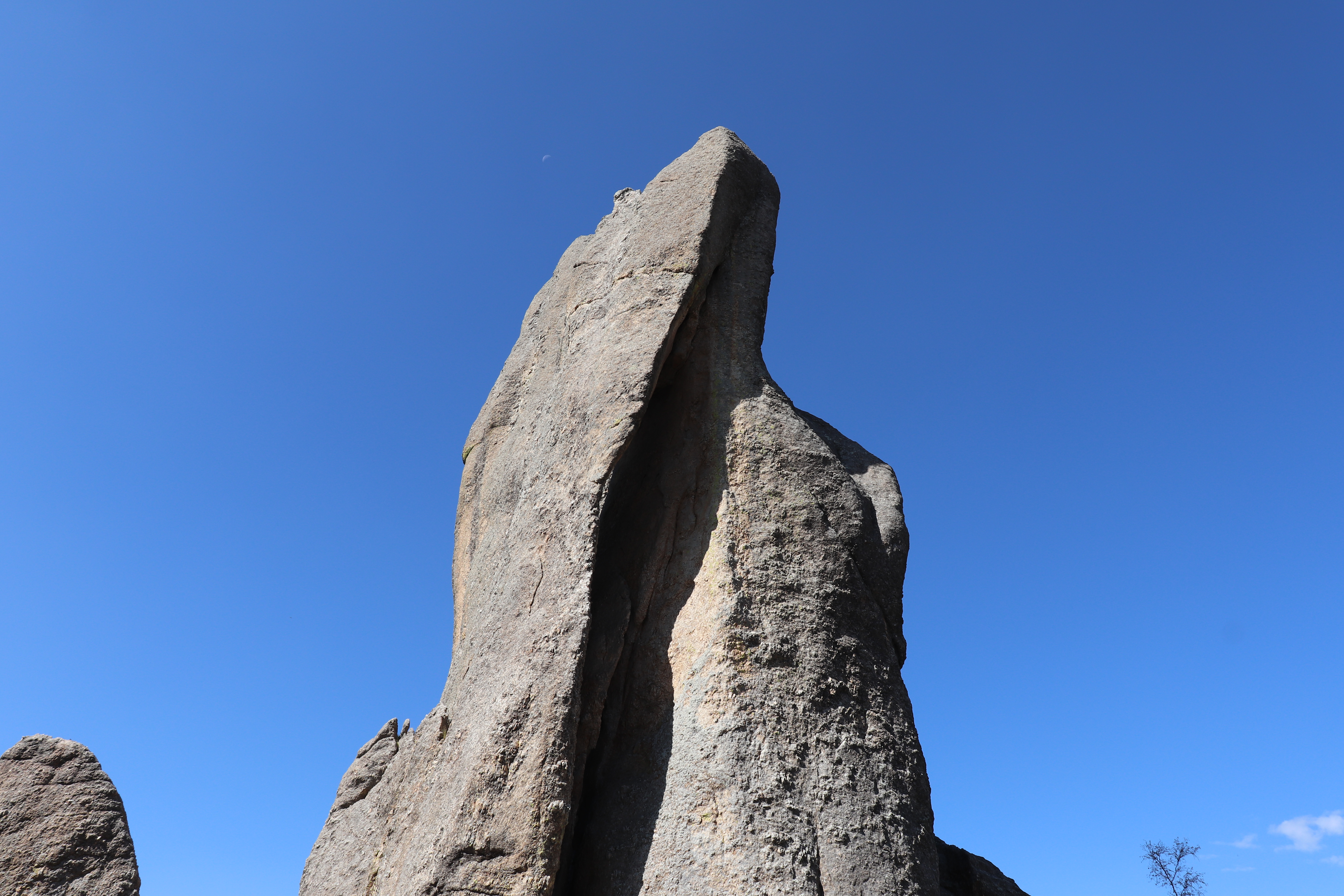The start of Needles Highway is a bit deceptive. The road remains fairly wide and open for a couple of miles, but tight turns start to come quickly. Before long, the road narrows and the striping disappears. The turns get tighter and tighter. Switchbacks become more common as we wind our way up the mountain. The landscape quickly drops off on one side. There’s absolutely no shoulder here and zero room for errors. One tiny mistake would be fatal, regardless of the type of vehicle you’re driving.