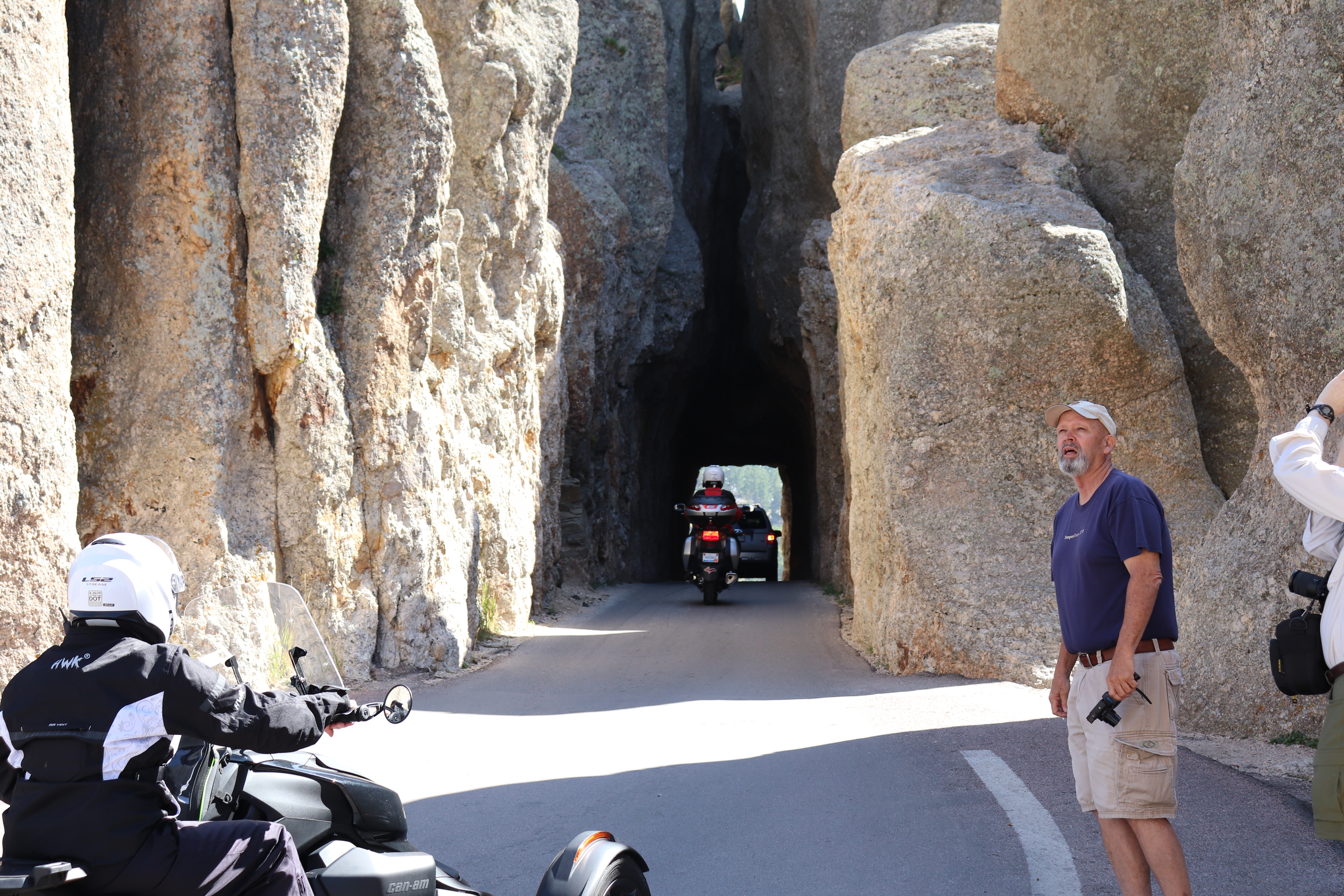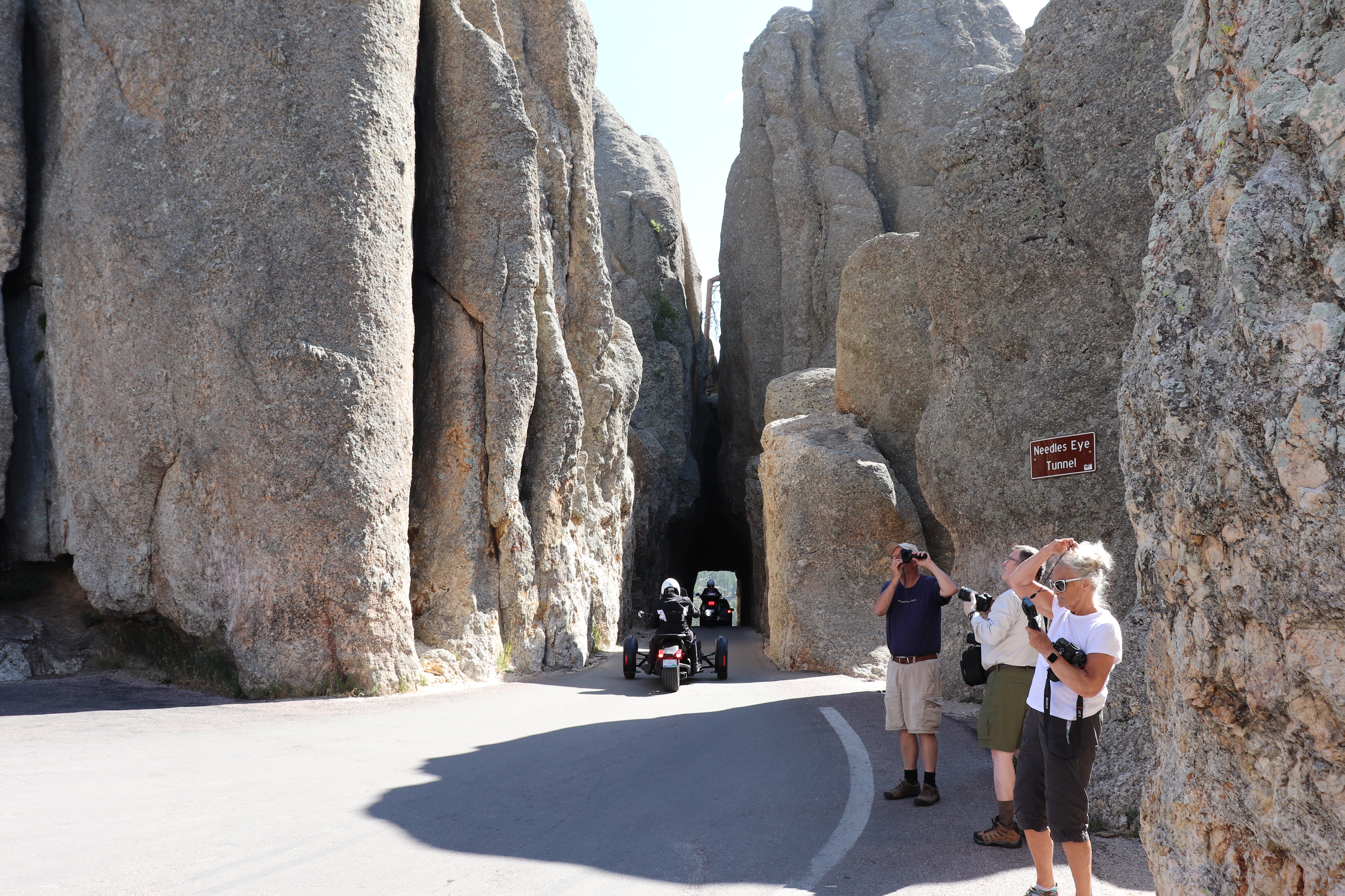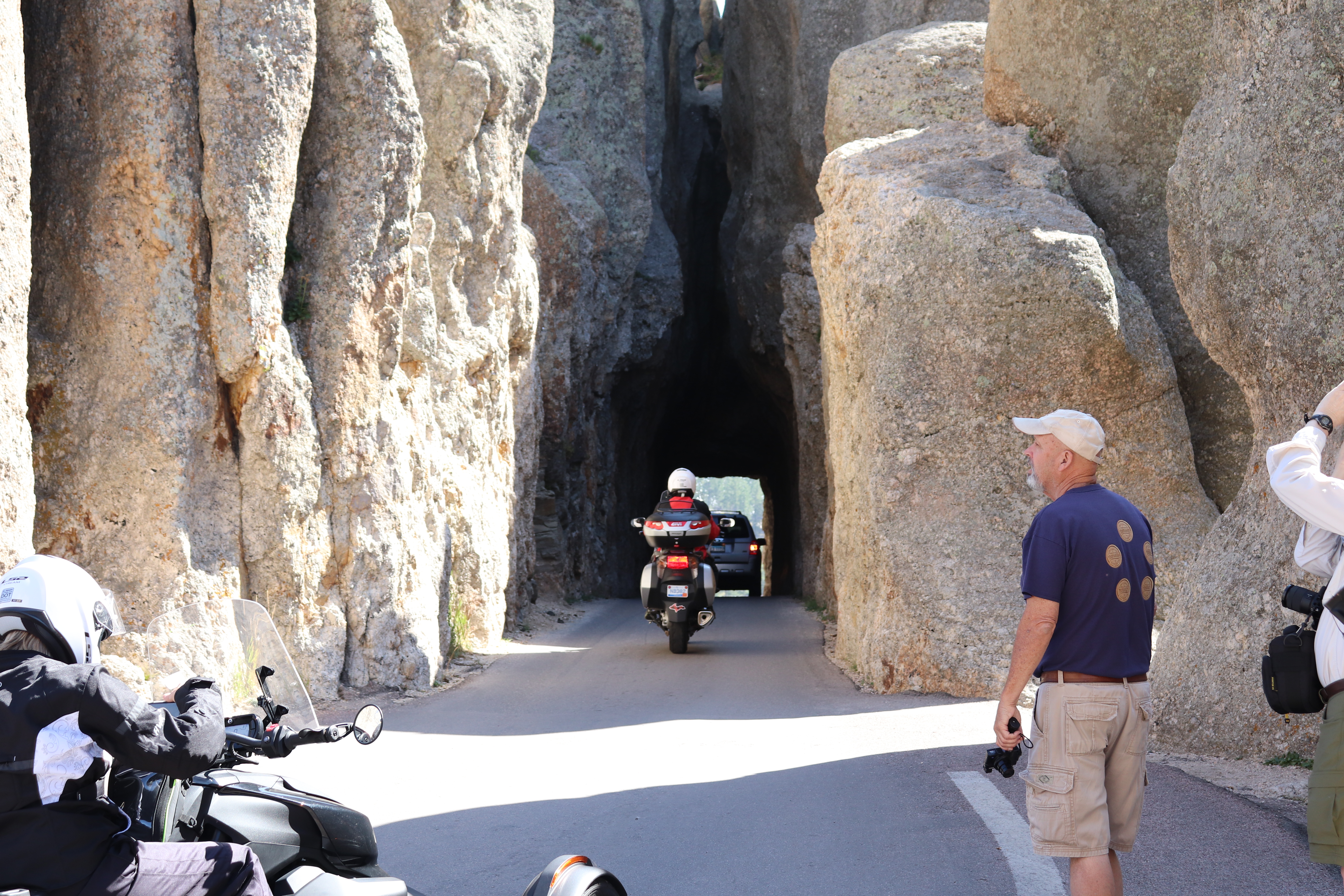 There’s three tunnels on this road, none of which are wider than a single vehicle. The first we come to is Hood Tunnel. It’s a very short tunnel and quite easy to pass through since oncoming traffic is easily seen. We soon make it to the entrance to Custer State Park and the continuance of the highway. From here we pass Sylvan Lake, a small mountain lake and absolute tourist spot. I of course skip this and continue climbing.