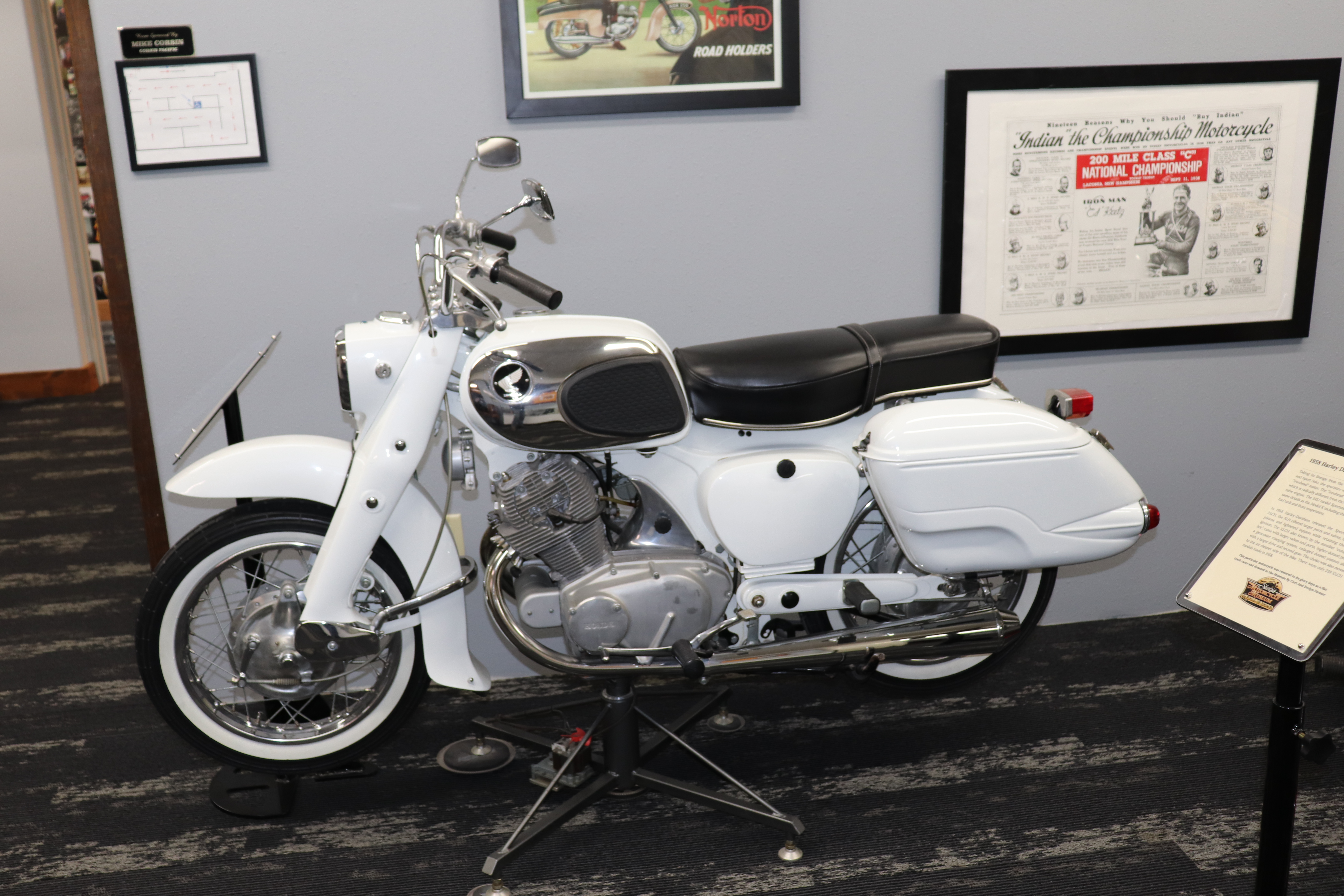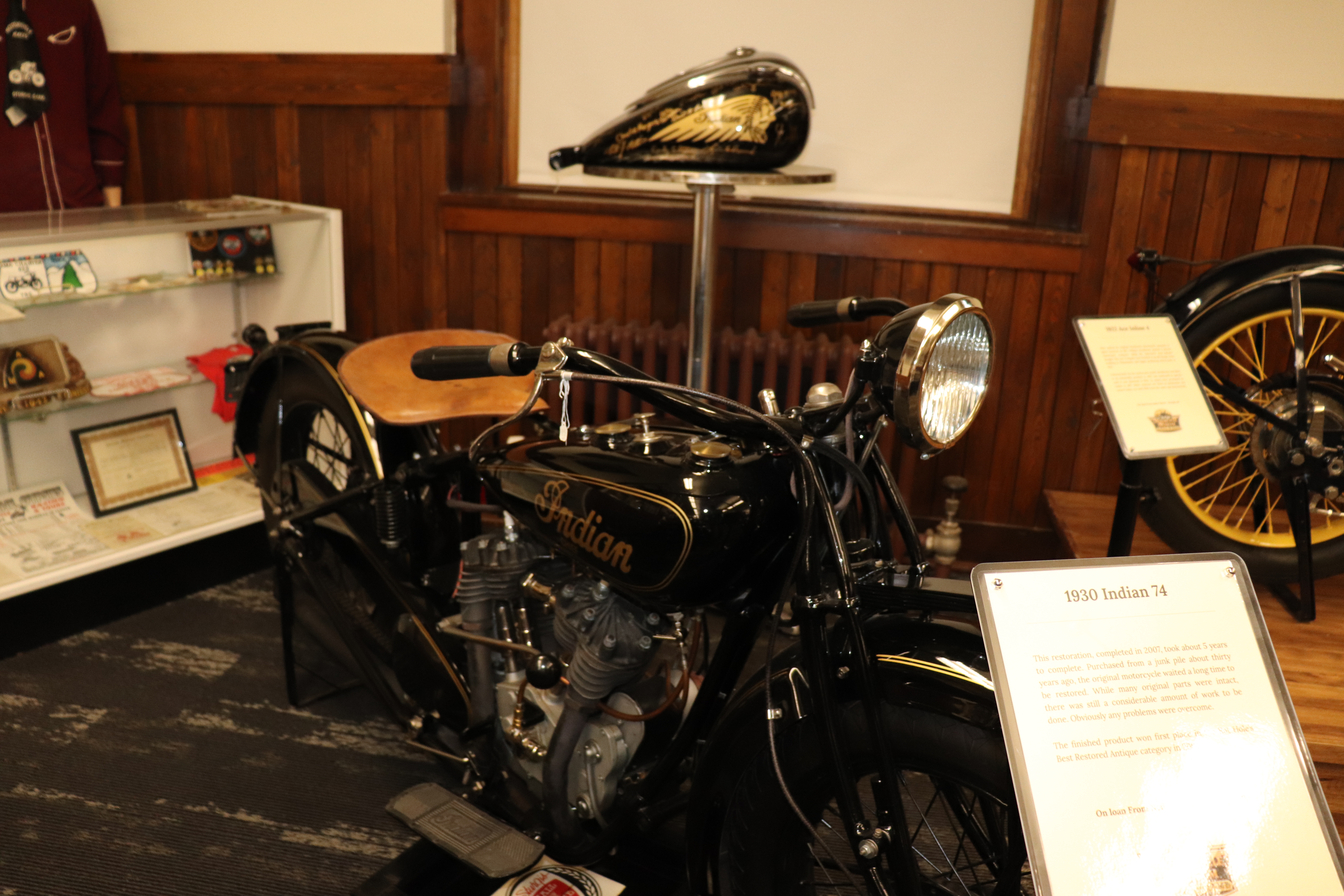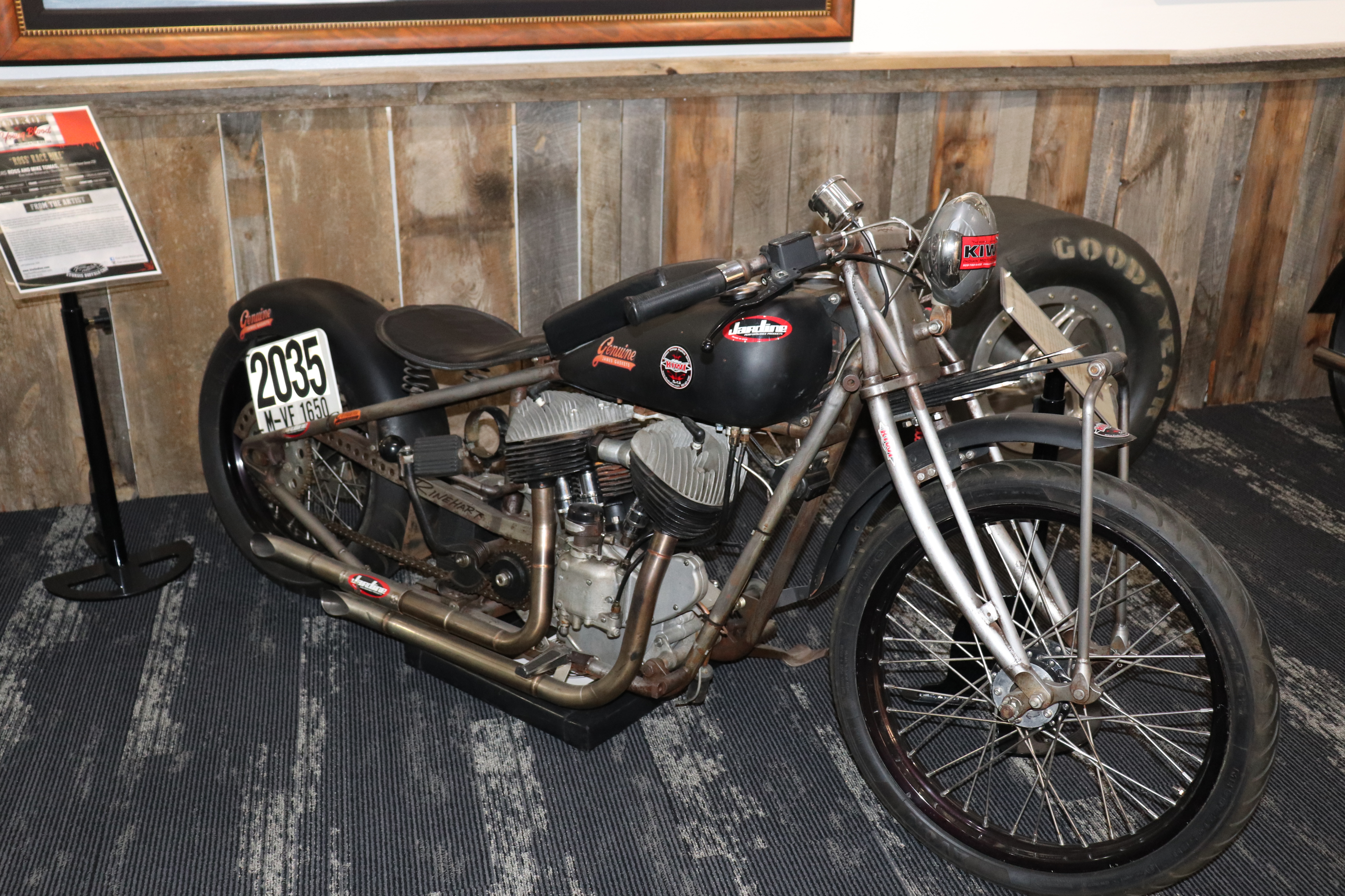 I’ll explain a couple of photos from the museum. The blue box is early GPS. It’s a printed list of directions in a rolling box. Turn one knob and advance the directions, the other knob will roll them back. The black ski looking thing is, well, skis for an Indian motorcycle. The late model bike pictured is a tribute bike to both the USS South Dakota (BB-57) and USS South Dakota (SSN-790). The USS South Dakota (BB-57) was the lead ship of the South Dakota Class battleships (4 in total). It fought extensively in WWII and was scrapped in 1962. The USS South Dakota (SSN-790) is a Virginia Class nuclear submarine still in service. There is a key to this motorcycle onboard the sub and any crew member is able to take this bike out to ride anywhere in the state of South Dakota. I seriously doubt any of them would have much time to travel here and then ride around the state. Still a cool bike and thought.