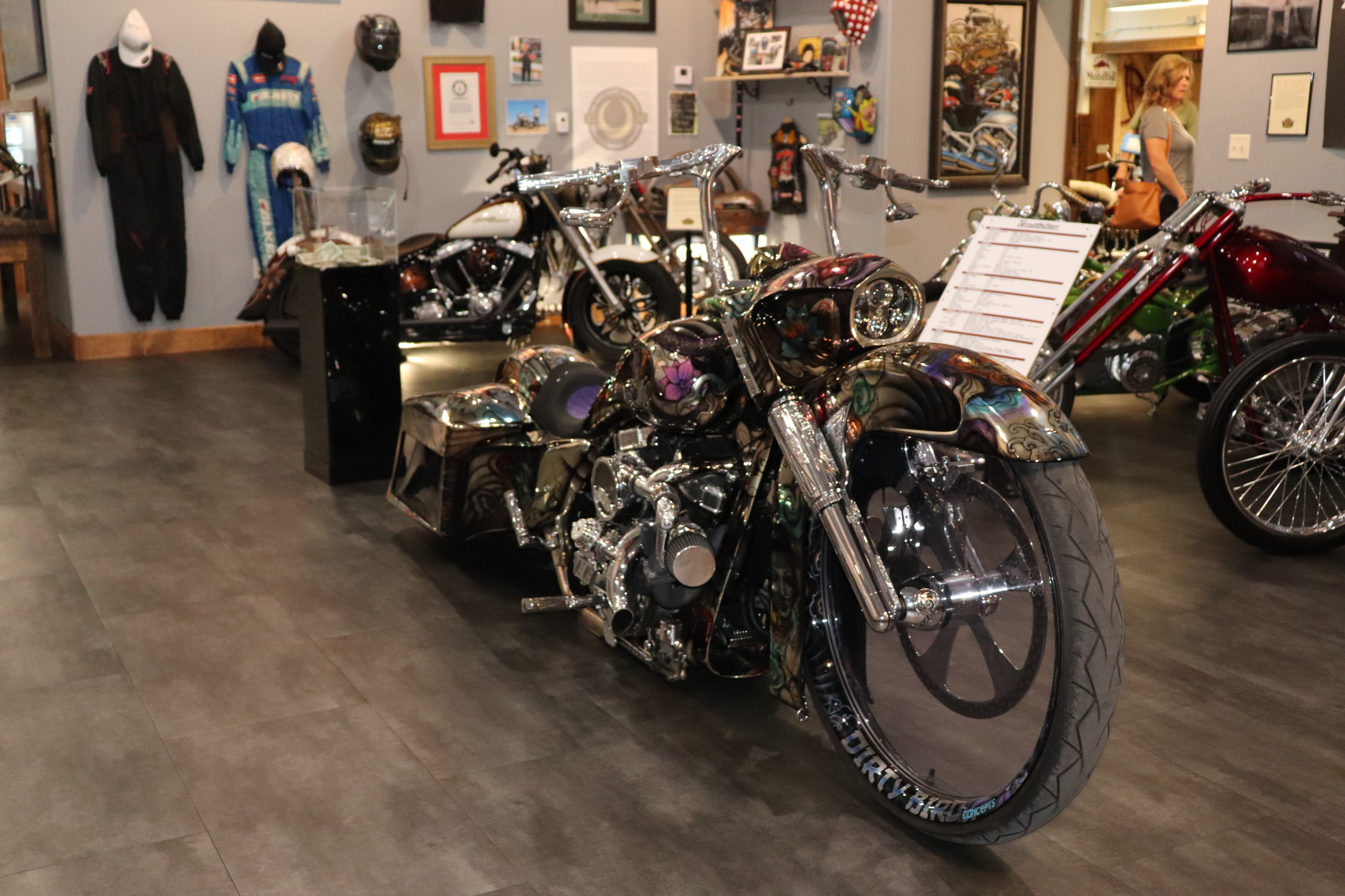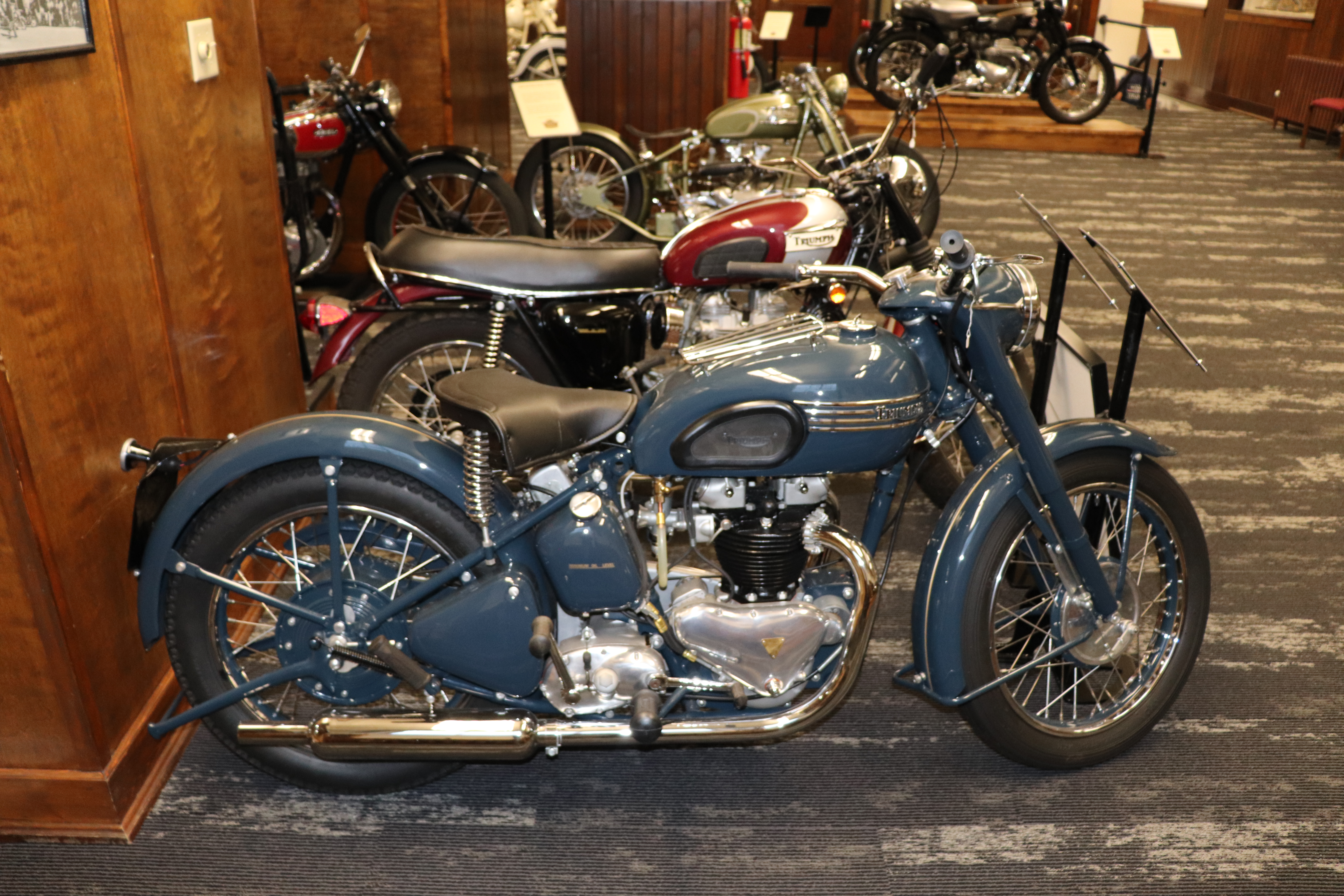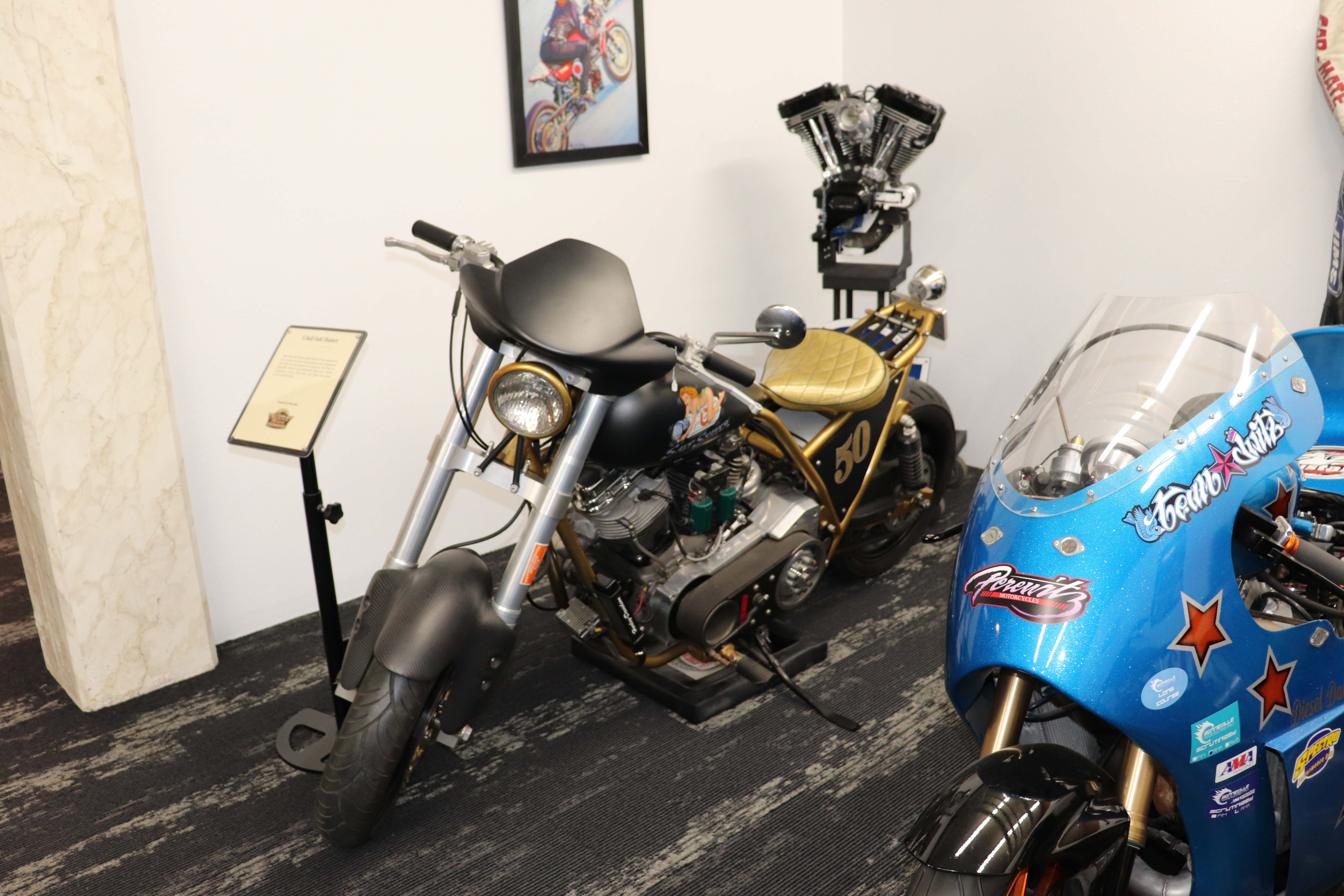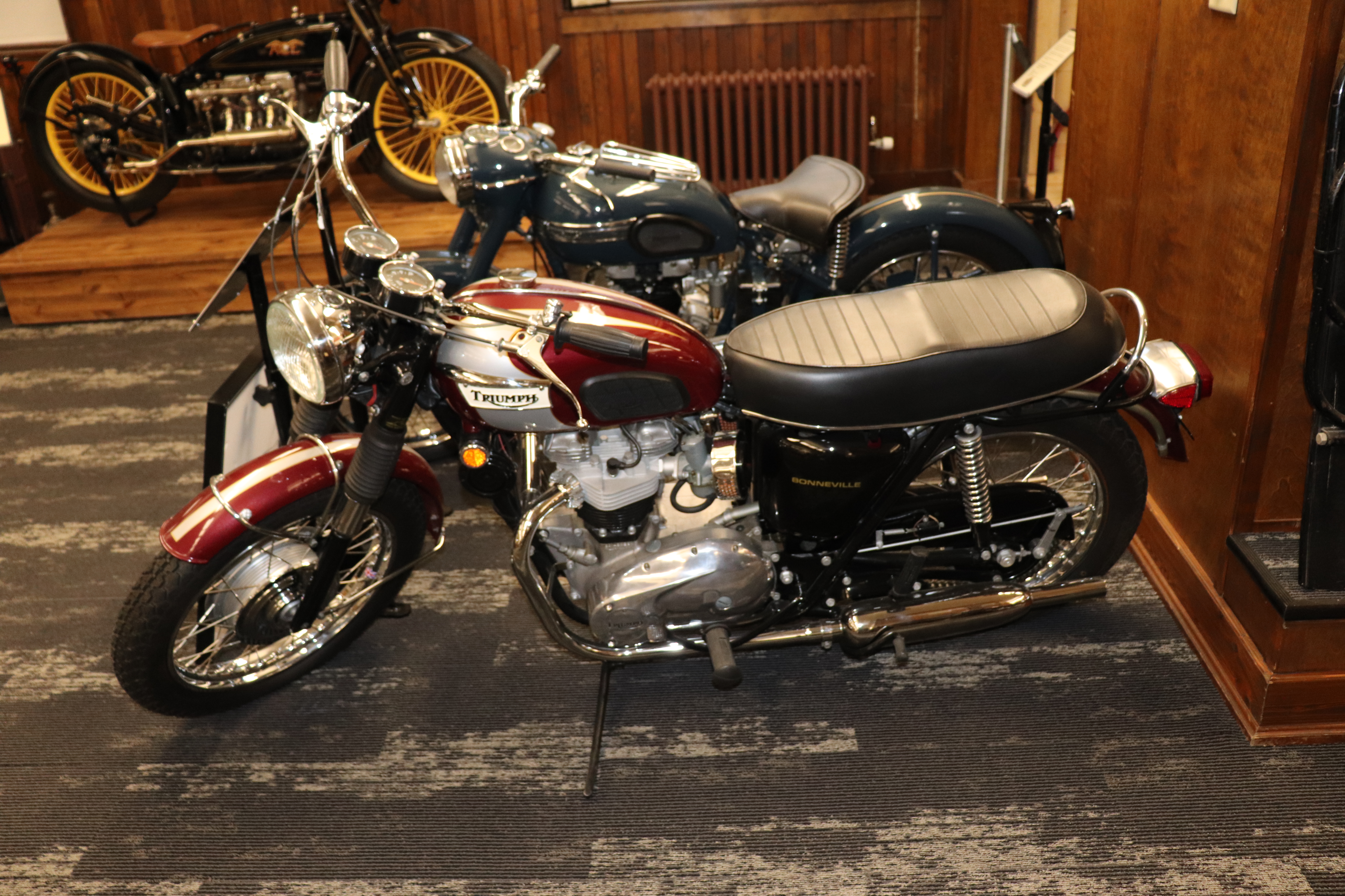 I’ll explain a couple of photos from the museum. The blue box is early GPS. It’s a printed list of directions in a rolling box. Turn one knob and advance the directions, the other knob will roll them back. The black ski looking thing is, well, skis for an Indian motorcycle. The late model bike pictured is a tribute bike to both the USS South Dakota (BB-57) and USS South Dakota (SSN-790). The USS South Dakota (BB-57) was the lead ship of the South Dakota Class battleships (4 in total). It fought extensively in WWII and was scrapped in 1962. The USS South Dakota (SSN-790) is a Virginia Class nuclear submarine still in service. There is a key to this motorcycle onboard the sub and any crew member is able to take this bike out to ride anywhere in the state of South Dakota. I seriously doubt any of them would have much time to travel here and then ride around the state. Still a cool bike and thought.