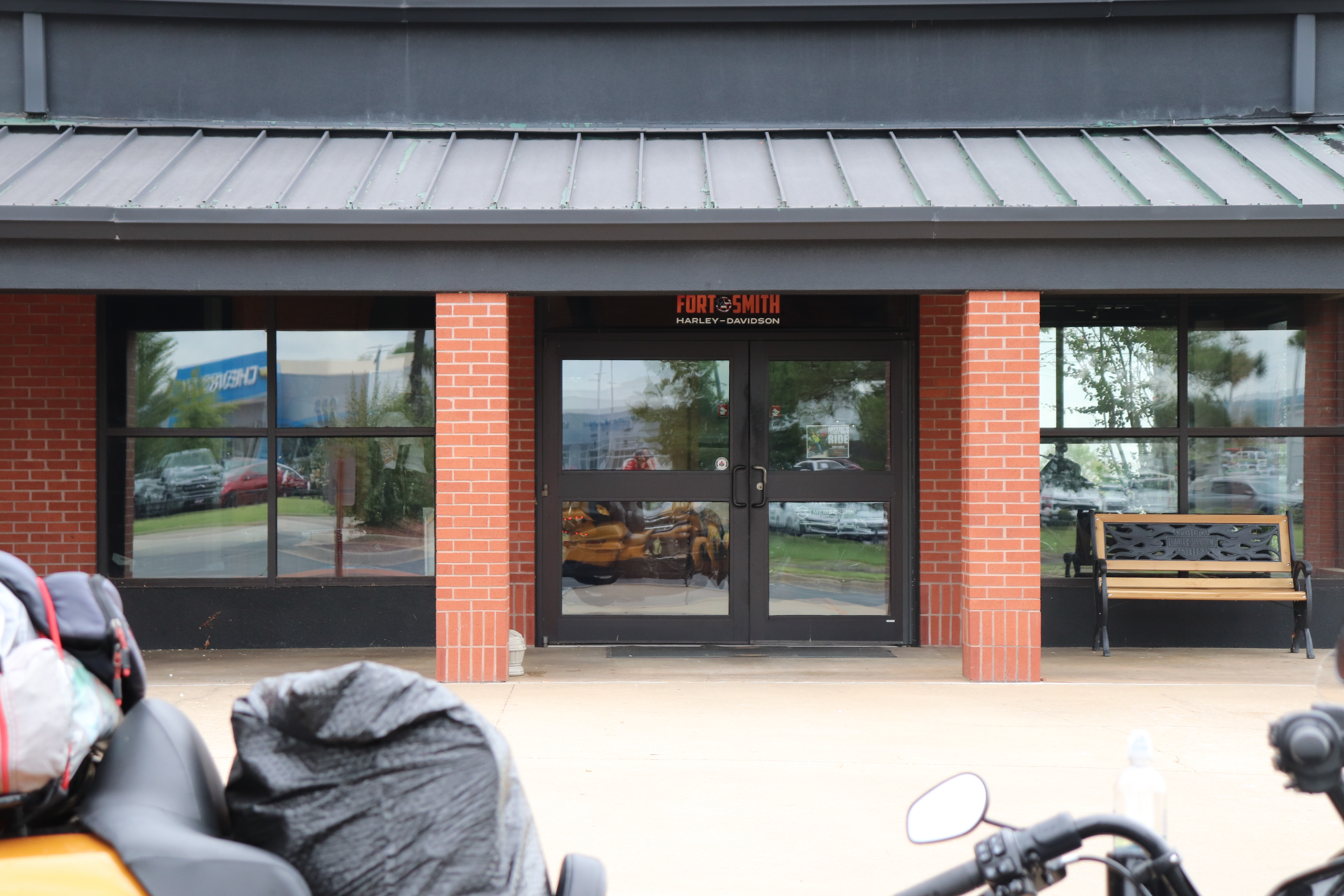 About 10 minutes later we’re back on the road and again it takes less than a mile for the weather to change – the rain stops entirely. Now I’m just completely frustrated with good old Mother Nature. But I’m not stopping again, we’ve got only 20 miles to go before we hit Fort Smith and an Arkansas Harley-Davidson dealership. The rain does return but never gets bad enough for me to have to slow to lower than 60mph. By the time we hit the Arkansas state line the rain has stopped which is a good thing because I don’t want to have to try and get my camera out in the rain.