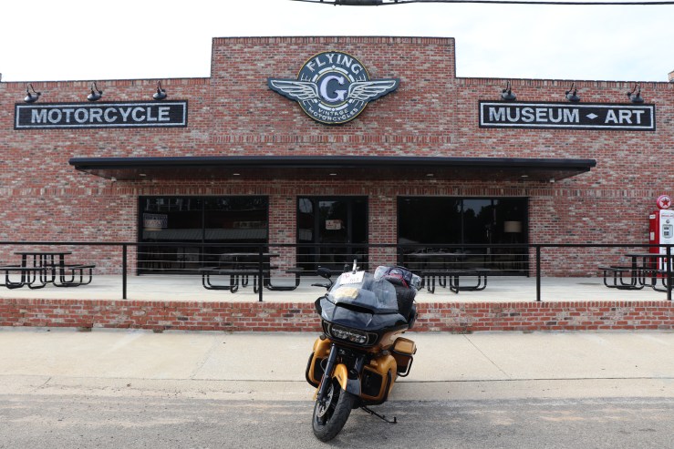 The owner pulls up as I’m writing my notes and asks if I’m on the tour. He then offers to let me use the restroom if I need, and I do, plus it’s an excuse to get inside. He also offers me a cold bottle of water. There’s about 30 bikes in this collection and everyone is part of his personal collection. He charges no admission. He tells me the building used to be an old hardware store and is located next door to his father’s old motorcycle shop, Leggett Cycle. I don’t know what he does for work but he’s definitely got some money. Thirty motorcycles, a building to show them in, charging zero admission and driving a CyberTruck. He’s certainly doing well.