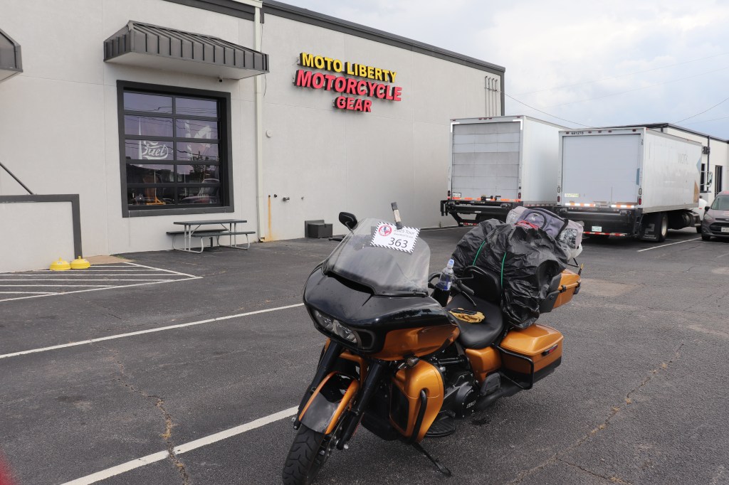 The rain soon comes but thankfully it’s not heavy and the wind isn’t bad. However, I am riding on inner city roads. Some drivers don’t care about wet roads and zip in and out of traffic and follow far too close to others. The rain is enough but worrying about the actions of others makes it worse. It’s only 15 miles to the second stop but it takes a good 30. By the time we get there the rain has stopped, but the dark clouds are still close. I don’t know if I’m in for more. This stop is the Moto Liberty Motorcycle Gear store in Addison.