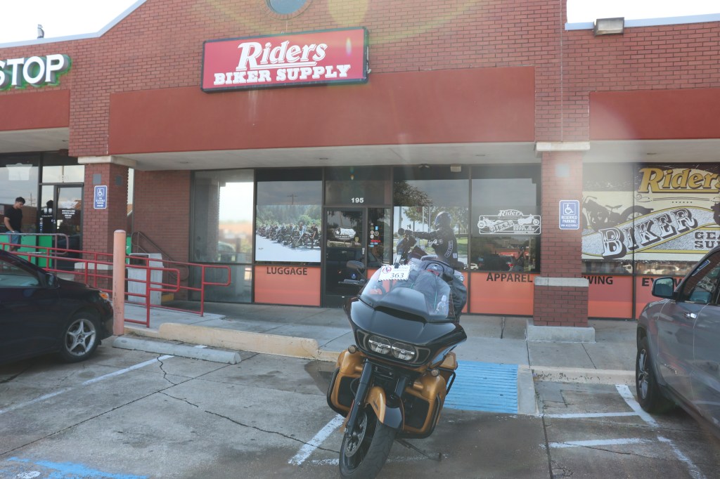The first top in Plano is the MotorcycleGear.com store situated amongst a group of shopping centers. Getting here is simple enough but the dark clouds have returned and I can’t tell what’s going to happen. They loom in the close distance as I arrive and gather my photos and notes. All is calm still when I arrive but as it sit there the wind begins to pick up, not a good sign. I check the weather radar and it looks like I’m gonna get wet. I decide to cover my bag which takes some time. I also decide that taking the time to suit up is pointless. All I do is empty my pockets into the trunk and carry on. If it comes hard I’m going to get wet regardless. I just don’t need my wallet or cash to get soaked again, my wallet is still fat due to yesterday’s water.