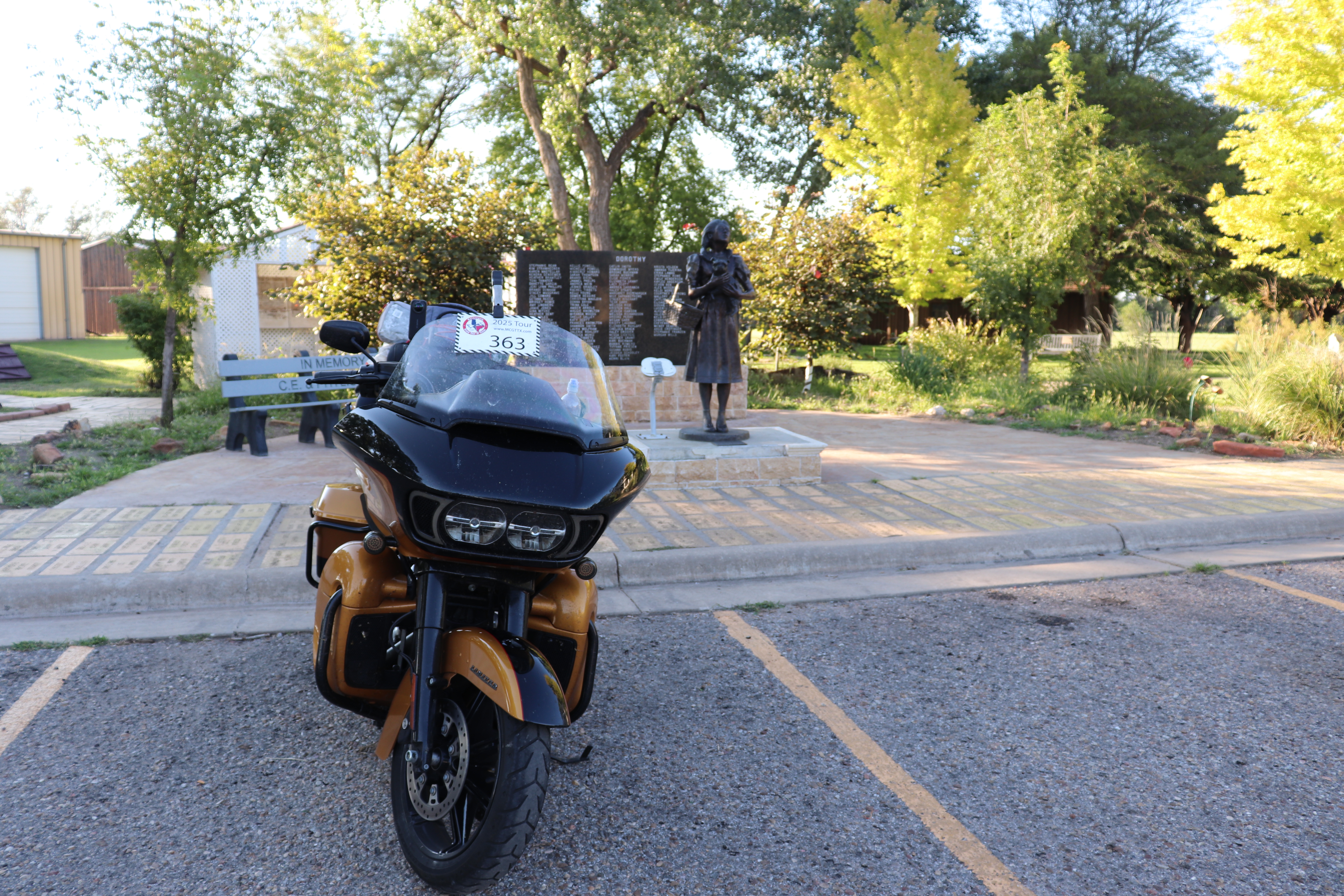 We finally make it into Liberal, Kansas and our second Republic of Texas stop, the Dorothy statue at Dorothy’s House and Land of Oz. The statue is not what I was expecting. I’m expecting the likeness of Judy Garland but I don’t see it. There is a bunch of yellow bricks placed in front of it with names etched into them, not sure what that’s about. There’s also a wall of names behind the statue, the title reading simply “Dorothy”. Not sure what that means either.