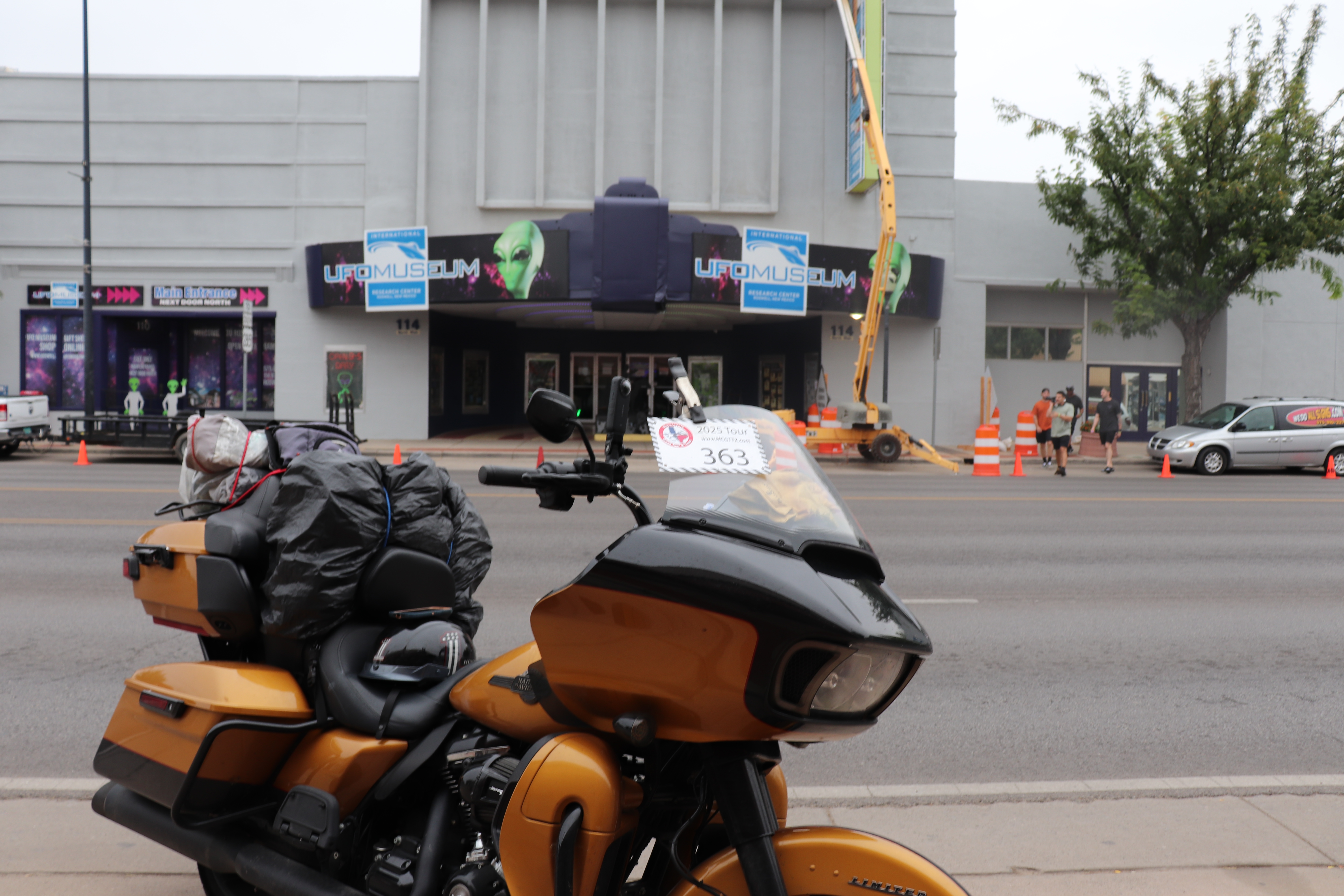 Our first stop of the day is the UFO Museum in Roswell. The sign is being fixed or replaced so I have to park across the street. This is the last of the Republic of Texas tour stops. That’s four out of the five so I can now consider that tour complete. Our next stop is Champion Harley-Davidson. The dealership is a few miles down the road. Roswell is a lot bigger than I remember it being the last time I was here in 2018. The dealership isn’t just Harley-Davidson. They sell Honda’s, Kawasaki’s and Yamaha’s. Dirt bikes and side by sides. The dealership itself is full of alien mannequins, all sitting on bikes through out the showroom. I snag my poker chips, which are of course alien themed and continue on to lunch.