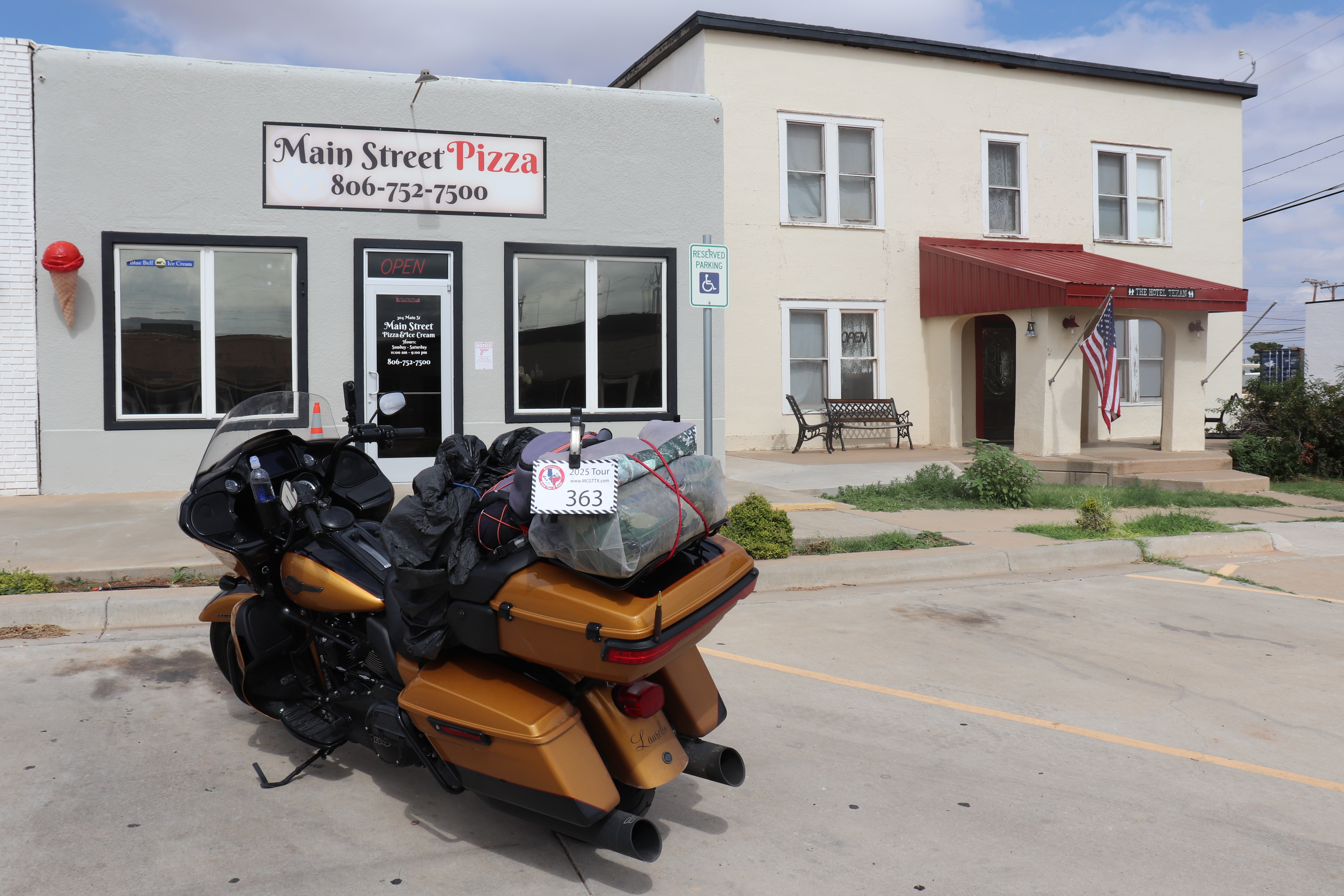 The next stop is a short 17 mile ride away in Seagraves, another small town. It’s Main Street Pizza and Hotel Texas. I’m not ready for food so don’t go in for pizza. The hotel offers a discount for tour riders and looks like a nice little place from the photos I’ve seen, but I’m shooting for Odessa as my end point tonight, another 80 miles down the road.